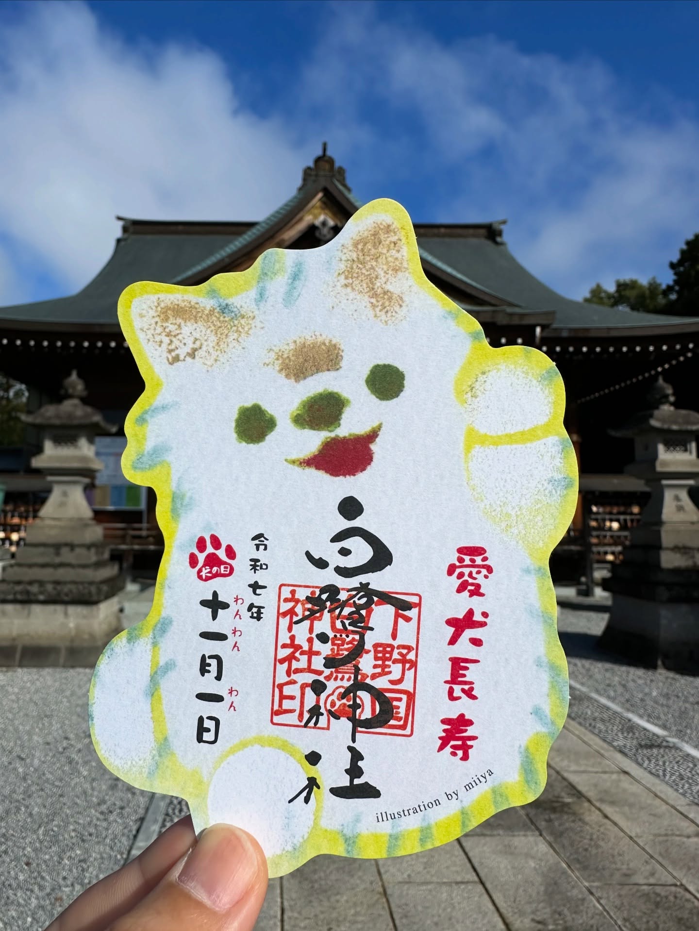 今年は、とちぎ未来大使として栃木県の文化・アート・観光の魅力を広く発信している、ステンシル版画作家のmiiya(ミーヤ)さんと初めてコラボし、丁寧に彩られた原画の温もりを大切にした「白の犬の日御朱印」と、神社で考案した「黒の犬の日御朱印」の2種類を準備しました